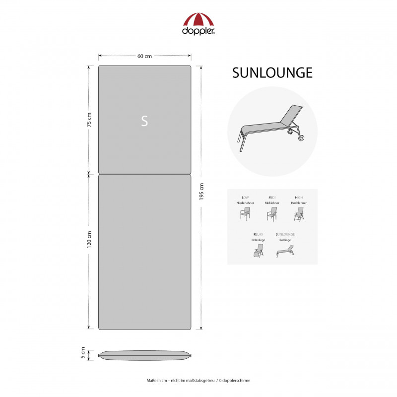 Poduška na záhradné ležadlo rady SPOT je v prevedení s obšitým lemom, 2x prešitá v operadle. Uchytenie pomocou posuvnej spony. Vďaka spone si môžete nastaviť veľkosť podľa rozmeru a druhu stoličky, spona je pevná a nevyťahuje sa. Upevnenie sedadla je pomocou dvoch šnúrok v ohybe podušky. Poťah podušky je nesnímateľný.