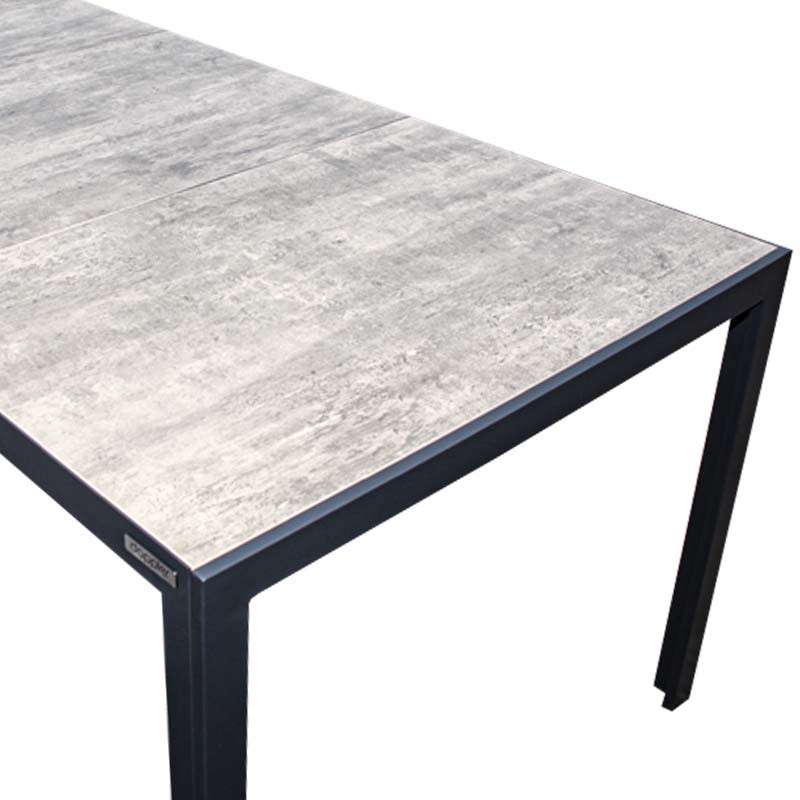 BERGAMO je moderný stôl vo veľkosti cca 180 x 90 cm so stabilnou hliníkovou konštrukciou, ktorá je ošetrená práškovým nástrekom v antracitovej farbe. Vďaka tomu je kov chránený proti korózii a poveternostným vplyvom a tým sa stáva záhradným nábytkom s dlhou životnosťou. Veľkou prednosťou je keramická doska v žíhanej šedej farbe. Vďaka tomu je stôl takmer bezúdržbový a odolný poveternostným vplyvom. Jednoduchý dizajn s neutrálnymi farbami môžete doplniť našimi ladiacimi kreslami a doplnkami značky DOPPLER.