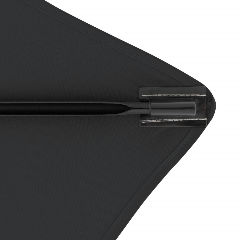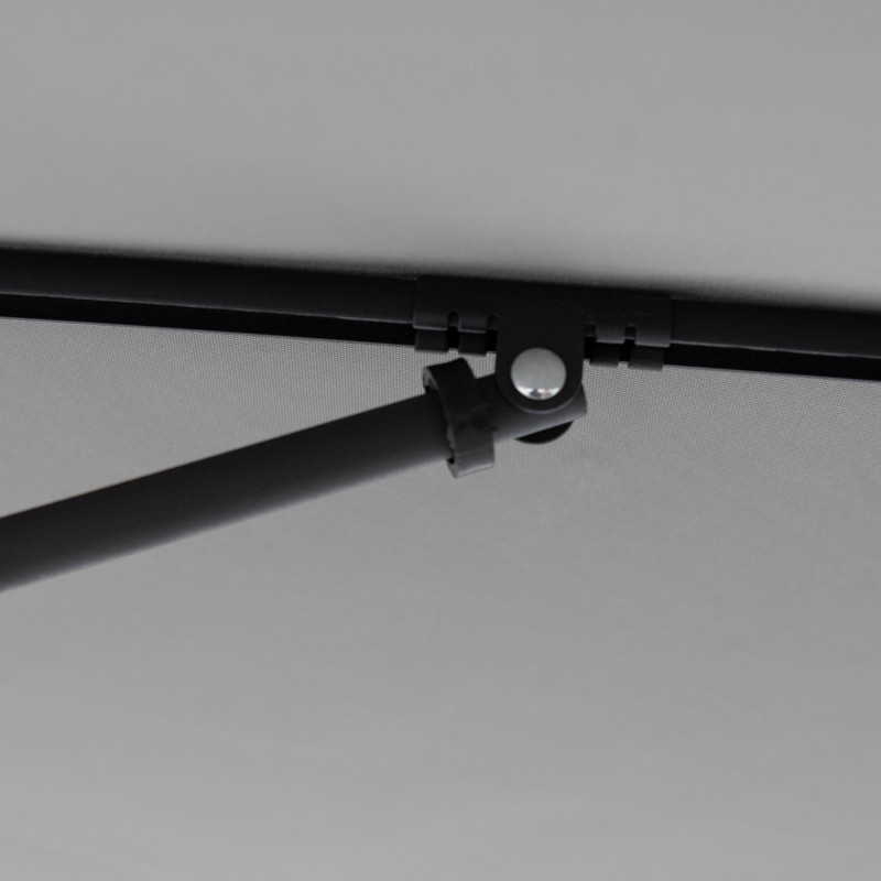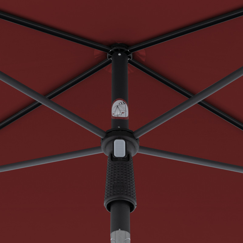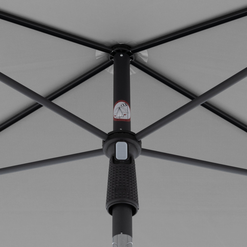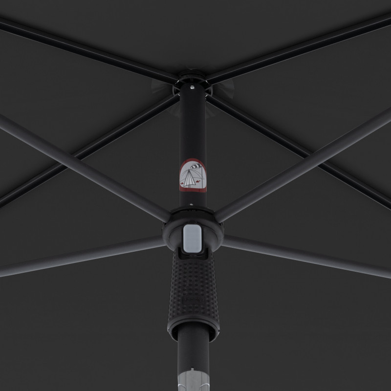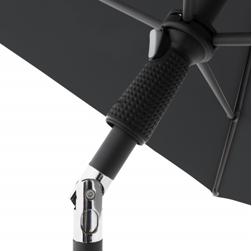 Slnečník má stabilnú oceľovú konštrukciu v antracitovej farbe s ručným otváraním a naklápacím kĺbom s 3 polohami naklopenia. Poťah je vyrobený zo 100% PET recyklovanej polyesterovej tkaniny a má dobrú UV ochranu 50+. Touto novou kolekciou „GREEN EDITION“ nasledujeme trend udržateľnosti materiálov a výrobkov.
