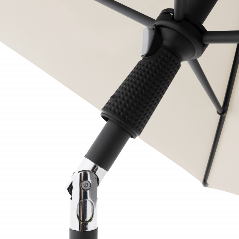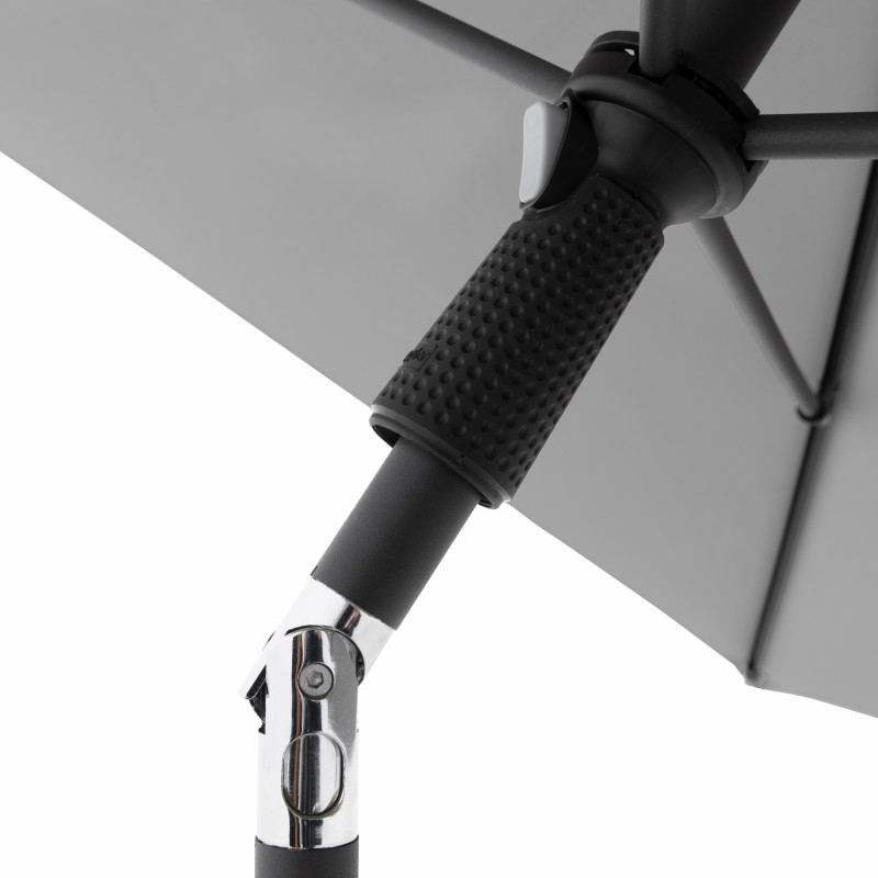 Tento moderný, ľahký, stabilný slnečník je ideálnym spoločníkom na balkón, terasu alebo záhradu. Slnečník má kvalitnú hliníkovú konštrukciu a funkciu automatického naklápacieho kĺbu. Je možné výškovo nastaviť. Poťah je vyrobený z 100% polyesterovej tkaniny odolnej poveternostným vplyvom s vynikajúcou UV ochranou 80+. Má snímateľný poťah na ručné pranie....