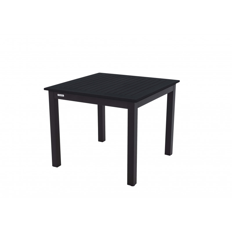 Praktický a moderný záhradný stôl štvorcového tvaru. Jednoduché a čisté línie stola sú vhodné do akéhokoľvek prostredia. Celý stôl je vyrobený z kvalitnej hliníkovej zliatiny v antracitovej farbe. Doska stola je rebrovaná. Na nohách sú nastavovacie kolieska na prípadné vyrovnanie nerovného povrchu.